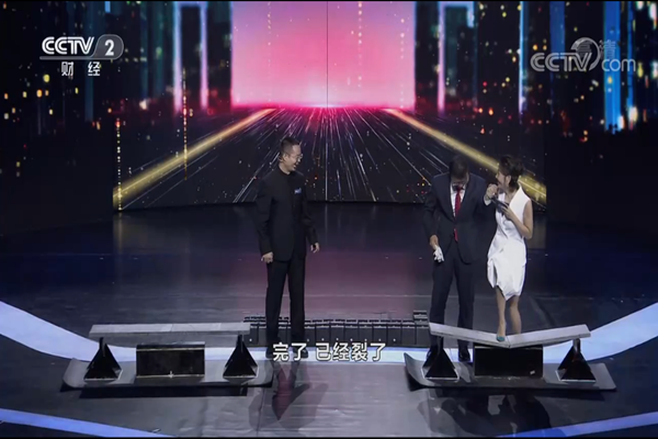 去年央視《創(chuàng)業(yè)英雄會(huì)》來(lái)西安選人,今年8月10日,鄧明科團(tuán)隊(duì)去北京錄制節(jié)目,節(jié)目10月9日播出。節(jié)目現(xiàn)場(chǎng),鄧明科準(zhǔn)備了一塊普通混凝土板、一塊高延性混凝土板和500公斤的砝碼,進(jìn)行了加載對(duì)比實(shí)驗(yàn)。